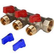 Коллектор Sanext 3/4 х1/2 , 3вых., c шаровыми кранами, латунь