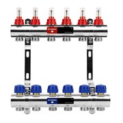 Коллектор Varmega VM151 1 х3/4 , 6вых., c вентилями, с расходомерами, сталь нерж., синий