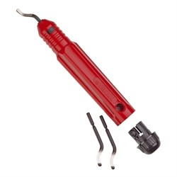 Фаскосниматель ручной оснащен тремя лезвиями и предназначен для медных и стальных (также труб из нержавеющей стали) труб, труб из ПВХ, ПНД. Такой инструмент имеет возможность замены режущих лезвий. Для удобного хранения лезвий имеется специальный отсек. Под разные типы труб возможно выбрать и установить разные лезвия. В комплектации поставляется три лезвия.