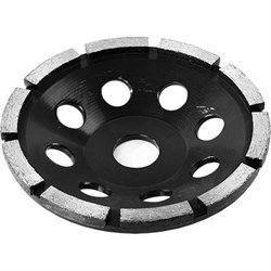 Алмазная чашка ЗУБР диаметром 180 мм. Предназначена для устранения неровностей на бетонной, каменной и гранитной поверхности. Оснащена однорядной кромкой высотой 6 мм из производительных синтетических алмазов. Способна обработать площадь до 500 м^2. Фиксируется к инструменту при помощи посадочного отверстия 22,2 мм. Эксплуатируется без подачи воды.