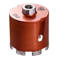 Алмазная коронка по бетону для подрозетников диаметром 82 мм. Создана специально для проделывания глухих отверстий электротехнического назначения. Уникальность данной оснастки заключается в возможности сухого сверления железобетона высокой степени армирования. На корпусе расположены специальные отверстия для отвода пыли и шлама, что позволяет сохранить рабочее место в чистоте, снизить нагрев и предотвратить заклинивание.Сегменты HD рассчитаны на работу в режиме подачи высокочастотных микроударов, что обеспечивает высокую скорость сверления и долгий срок службы оснастки. Подрозетник подходит для профессиональных буровых установок или бытовых дрелей мощностью от 1 кВт.
