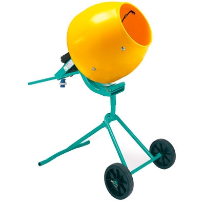 Компактная высокопроизводительная бетономешалка с электрическим приводом. Модель работает от сети 220 В. Модель предусматривает проведение небольших по объему работ. Редуктор машины изготовлен из алюминия. При работе машина предусматривает допустимый уровень шума. Опора бака для смешивания может вращаться на 360°, что повышает комфорт при работе. Опорная нога имеет большую поверхность, а конструкция предусматривает наличие транспортировочных колесиков. Особенности корпуса модели делают ее установку простой и быстрой, а работу удобной. Монтаж машины занимает не более трех минут.