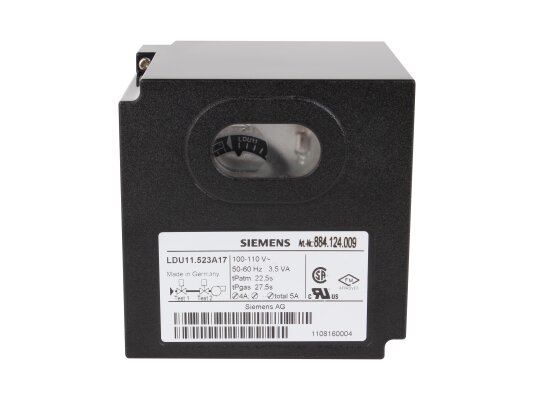 | Описание | Блок контроля герметичности Siemens LDU11.523A17 служит для автоматической проверки газового оборудования на наличие утечек для своевременного прерывания подачи газа на горелку и безопасной эксплуатации промышленной установки. Изготовлен по европейским нормам EN 1643. Работает совместно с клапаном отсечки, перекрывающим поток. Принцип работы Блок LDU11 в сочетании с реле давления выполняет проверку герметичности через контроль давления при запуске или перед запуском горелки/ во время предварительной продувки (время предпродувки 60 сек.)/ после управляемого отключения/ при постпродувке. Проверка состоит из двух ступеней: контроль герметичности клапана со стороны магистрали подачи газа и со стороны горелочного устройства. При установлении значительного роста давления на первой фазе или существенного снижения на второй, Siemens LDU11 препятствует запуску горелки, переходит в режим блокировки (срабатывает сигнальная лампа с индикатором неполадок). Особенности и параметры: