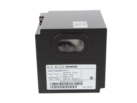 Блок контроля герметичности Siemens LDU11.523A27 применяется в системах автоматики промышленных горелок совместно с отсечным клапаном для мониторинга на наличие утечек перед запуском и подачи сигнала о блокировке. Произведен в соответствии с техническим регламентом EN 1643.