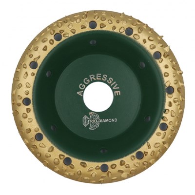Круглая алмазная чашка Trio Diamond Grand 1 Aggressive применяется для шлифовальных работ по дереву, пластмассе, стеклопластику, песчанику, газобетону и силикатному кирпичу. Приспособление устанавливается на УШМ и вращается со скоростью до 12200 оборотов в минуту. При помощи инструмента пользователь сможет провести грубую и деликатную обработку материалов.