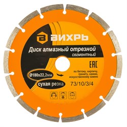 Диск алмазный ВИХРЬ 180х22,2 мм