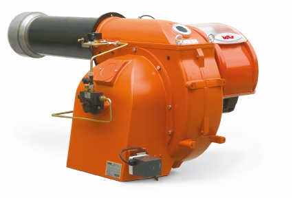 Корпус вентилятора из алюминиевого литья.Вентилятор специальной конструкции.Устройство регуляции подачи воздуха для сгорания.Крепежный фланец, скользящий вдоль сопла, позволяет найти оптимальное положение сопла в камере сгорания.Регулируемая сопловая труба с форсункой из нержавеющей стали и стальным диском пламени.Трехфазный электрический двигатель управляет работой вентилятора и насоса.Шестеренчатый насос с регулятором давления и клапанами перекрытия/подачи топлива.Блок распыливания с закрывающей форсунку иглой.Блок автоматического контроля и управления горелкой в соответствии с Европейским стандартом EN230.Контроль пламени с помощью фоторезистора.Блок управления горелкой: переключатели вкл./выкл., первой и второй ступеней, индикаторы работы и блокировки горелки.Клеммная коробка для подвода электропитания, подсоединения термостата 4-х и 7-ми полярными штекерами к горелке и контроля работы горелки на второй ступени.Степень электрозащиты IP40.