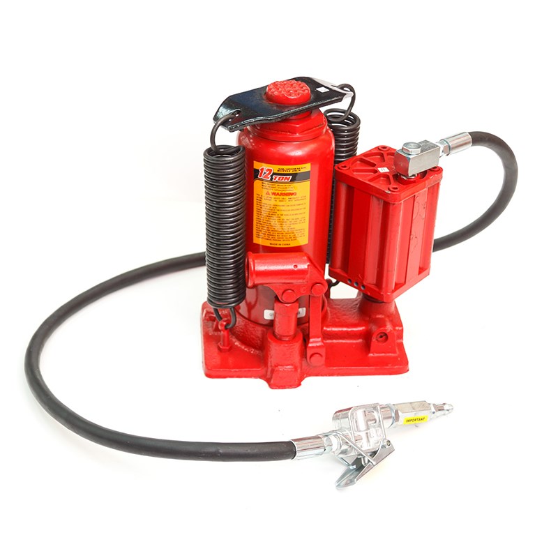Пневмо-гидравлический домкрат Torin TQ12002 имеет основание бутылочного типа, применяется для подъема грузов, деталей, транспортных средств, масса которых составляет 12 тонн. Отличается надежностью и долговечностью конструкции. Рабочее давление - 7-8.5 атмосфер. Прилагается шланг высокого давления. Регулируемый шток имеет ход 170 мм. Максимальный подъем до 510 мм.
