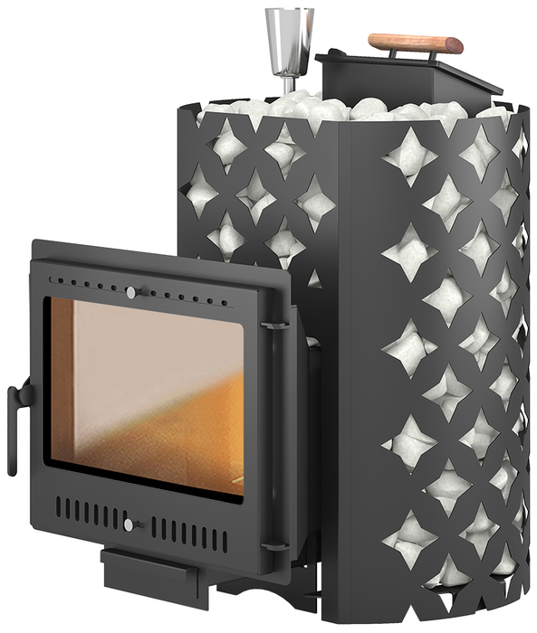 Дровяная печь ЭТНА 18 (Панорама) М Закрытая каменка - это эффективное оборудование для парной русской и турецкой бани, а также финской сауны. Благодаря продуманной конструкции и простому управлению можно быстро создать необходимый микроклимат в помещении и поддерживать температуру и уровень пара на нужном уровне.