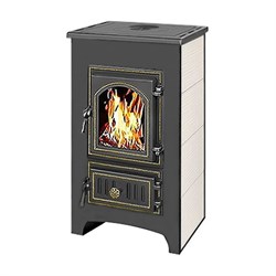 Печь дровяная Везувий ПК-01 (270) с плитой беж. содержит варочную плиту, что помогает с ее помощью готовить помимо обогрева помещения. В задней части печи располагается отверстие для подвода дымохода. Использование для колосников чугуна позволяет им сохранять форму и при этом подавать воздух для эффективного сгорания топлива в чугунной топке, защищенной шамотом.