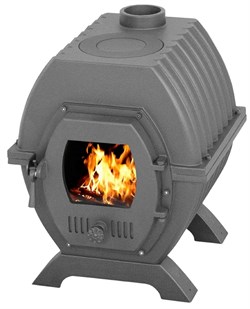 Отопительная печь со стеклянной дверцей российского бренда Везувий серии Триумф изготовлена из жаростойкого чугуна ГОСТ 1412-85. Дверца изготовлена из жаростойкого стекла и прочной котловой стали 09Г2С. Варочная поверхность позволяет разгореть чайник или приготовить еду. Печь работает на брикетах и дровах.