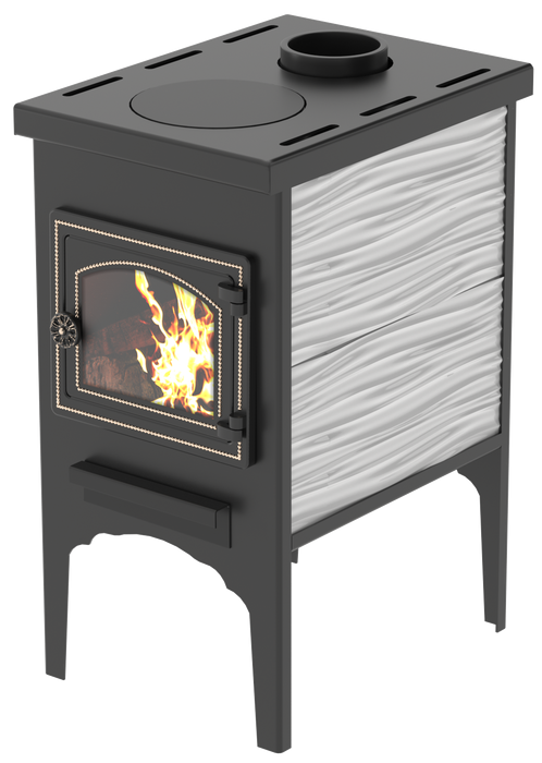 Особенностью конструкции стальной отопительной дровяной печи российского производства Везувий В5С является возможность использования верхней горизонтальной поверхности в качестве варочной. Это делает оборудование не только источником тепла в дачных и садовых домиках, но и устройством, на котором можно приготовить еду.