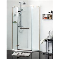 Душевой уголок AZARIO MONTREAL 3231 900*900*2000 без поддона, левое, со стеклянной полкой профиль золото, стекло 8 мм, AZ-NWG3231 900 L