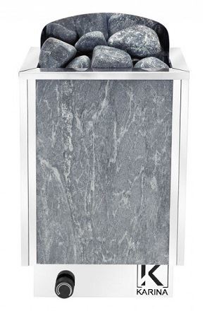 Электрические банные печи Karina TREND талькохлорит это линейка стильных моделей настенного типа мощностью от 2 до 9 кВт. Стальной корпус помещен в облицовку из талькохлорита, который не только служит в декоративных целях, но и является превосходным теплоаккумулятором. Электрокаменки не требуют монтажа дымохода, удобны в эксплуатации и обслуживании.