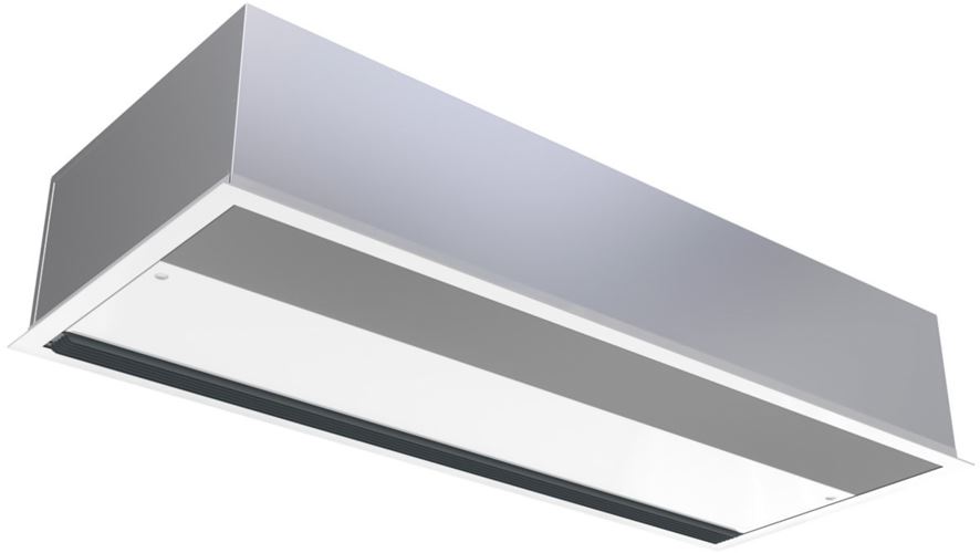 Завеса потолочного монтажа Frico (Фрико) ARFEC4225E30 практически незаметна и соответственно не нарушает архитектурных решений или внутреннего оформления входных групп. Опционально допускается окрашивание каркаса и передней панели в цвет под дизайн помещения. Общий КПД устройства зависит от разницы температуры и давления в проеме, а также от ветровой нагрузки.