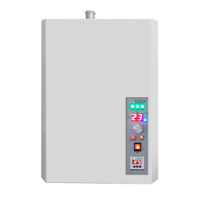 Электрический индукционный котел модели Галан Галакс 6 поставляется совместно с насосом и подходит для монтажа в коммерческих и административных зданиях. Прибор способен поддержать постоянную температуру в холодное время года в зданиях с площадью до 90 кв. м. Агрегат укомплектован дисплеем с подцветкой и системой автоматического регулирования выдаваемой оборудованием мощности.