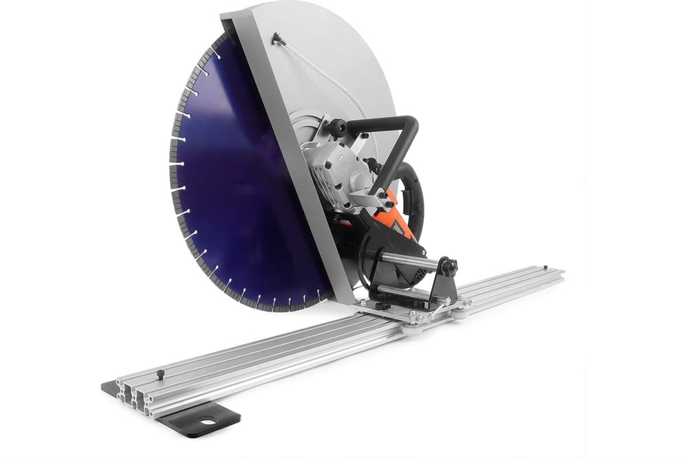Насос для подачи воды в рабочую зону для снижения пылеобразования и износа диска Система защитного отключения при попадании воды в зону электричества Мощный электрический двигатель Плавный пуск и защита от перегрузки/перегрева Направляющая шина 1200+1200мм в комплекте Глубина пропила 260 мм