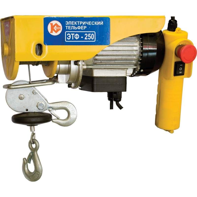 Электрический тельфер ЭТФ-250 может использоваться как автономно, при закреплении на консольных конструкциях, так и вместе с подъемными кранами. Максимальный вес обслуживаемого груза, а также высота и скорость подъема зависят от варианта зацепа: при использовании полиспаста можно поднимать до 250 кг на 6 метров, без него вес уменьшается до 125 кг, но подъем возможен на 12 м.