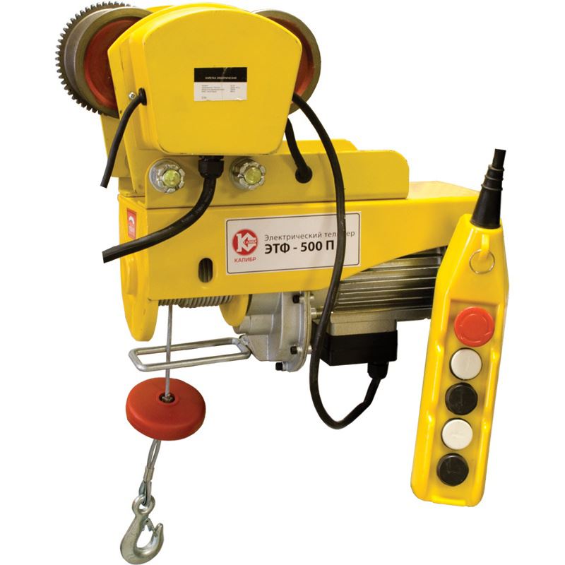 Электротельфер Калибр ЭТФ-1200А — это устройство, которое применяется для перемещения грузов. Оснащен двумя специальными колесами которые осуществляют доставку материалов в горизонтальной плоскости. Основным рабочим инструментом тельфера является многожильный стальной трос намотанный на барабан, и крюк на конце. Есть возможность использовать аппарат вместе с полиспастом или без него. Возможны два варианты подъема: грузы массой до 250 кг поднимает со скоростью - 10 м/мин, до 500 кг - 5 м/мин. Скорость каретки составляет 13 метров в минуту.