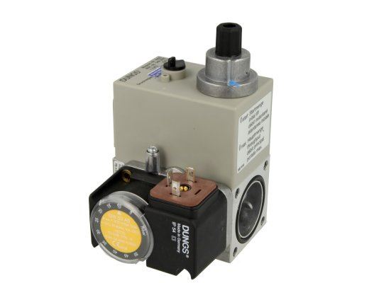 - Датчик-реле давления закреплен к корпусу блока и отвечает за контроль минимального давления газа на входе. Давление газа на выходе из мультиблока регулируется в широком диапазоне, от 4 до 50 мбар. Выходные параметры давления поддерживаются автоматически.