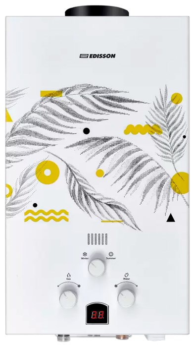 Газовый проточный водонагреватель EDISSON (Эдисон) E 20 GD (Каннская ветвь) оснащен удобным управлением, благодаря готору можно настроить комфортную температуру воды и интенсивность подачи газа. Текущие параметры отображаются на цифровом дисплее. Модель обладает привлекательным дизайном, передняя панель украшена оригинальным изображением.