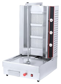 Гриль для шаурмыAssum TT-WE1291используется на предприятиях общественного питания и торговли для приготовления мясной начинки популярного блюда шаурма (шаверма). Модель оснащенаэлектродвигателем и 4 горелками с отдельной регулировкой. Корпус выполнениз нержавеющей стали.