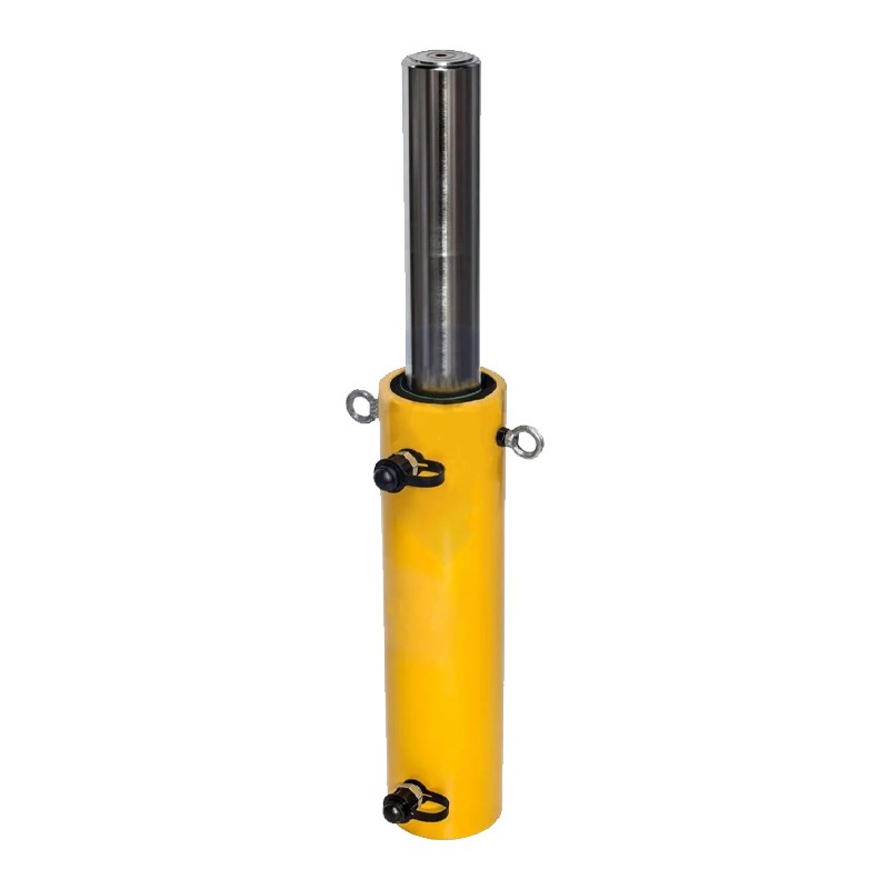 Модель работает от портативного гидронасоса или автоматической маслостанции двойного действия. Устанавливается на плоскую крепкую поверхность. Может использоваться в разнообразных пространственных позициях. Шток оснащен двумя ориентирующими кольцами для ослабления трения и приема на себя торцовых напряжений.