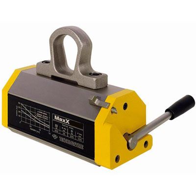Магнитный захват MaxX 600Е с максимальной грузоподъемностью до 600 кг. Предназначен для подъема и перемещения изделий из металла. Рассчитан на работу с круглыми заготовками массой до 0,25 тонн и плоскими до 0,6 тонн. Обеспечивает мощный магнитный поток. Активируется и демонтируется поворотом удобной рукояти.