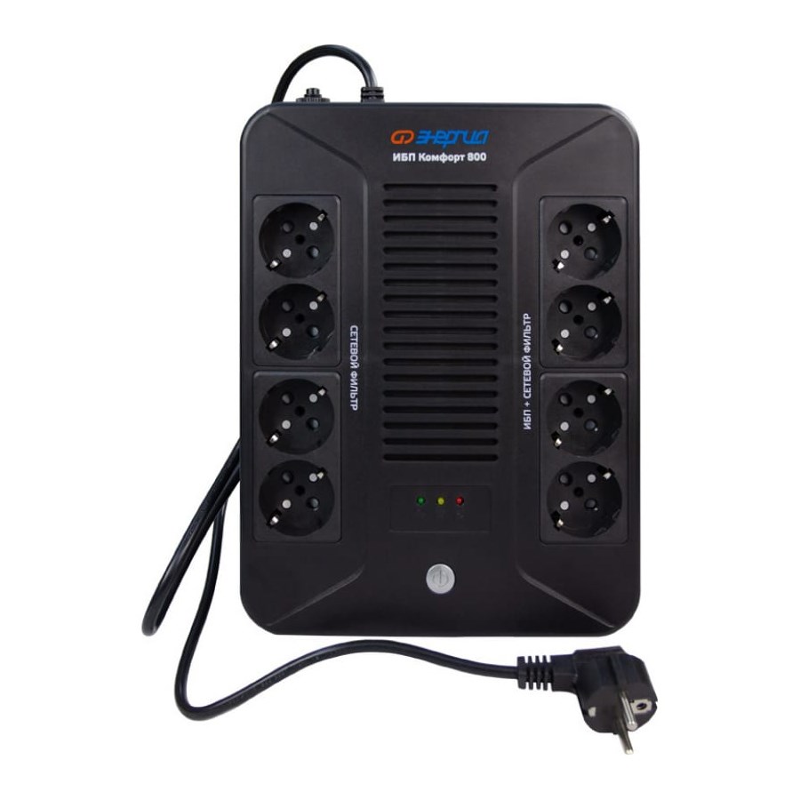 ИБП Энергия Комфорт 600 необходим для защиты персональных компьютеров, аудио–видеоаппаратуры, а также офисной техники небольшой мощности. Выделяется малыми размерами, низкой массой. Форма выходного сигнала - модифицированная синусоида. Оборудована световая индикация состояния.