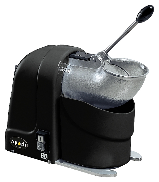 Измельчитель льда Apach AIC2 используется на предприятиях общественного питания и торговли для получения ледяной крошки, которая применяется для приготовления коктейлей и напитков, а также для выкладки и охлаждения разных видов продуктов. Модель оснащена регулятором степени помола. Кожух и бункер выполнены из термоформованного полистирола для пищевых продуктов, загрузочная и выходная часть, рычаг - из полированного алюминия, нож - из никелированной и прокаленной нержавеющей стали AISI 420.