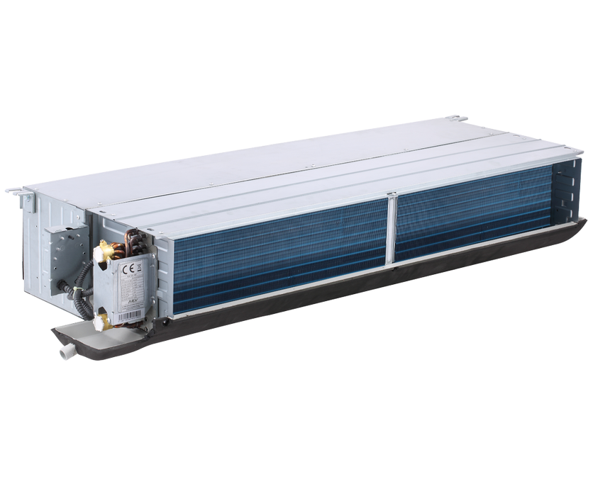 Канальный фанкойл Mdv (Мдв) MDKT3-08S относится к низконапорному типу и осуществляет подачу воздуха через вентиляционную решетку. Модель предназначена для скрытого монтажа и оснащена дренажным насосом для отвода конденсата. В комплект включен моющийся фильтр для очистки воздуха от пыли, шерсти и так далее.