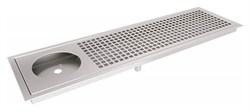 КаплесборникКАМИК900х150х25 ммпредназначен для установки на барной станции или отдельно для сбора капель на предприятиях общественного питания и торговли. Модель оснащена перфорированными вставками и отверстием под омыватель.Конструкция изготовлена из высококачественной пищевой нержавеющей сталиAISI 304 толщиной 1,5 мм и 1 мм.