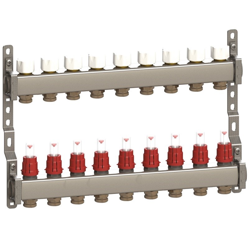 Коллекторные группы серии CX позволяют равномерно распределять расход теплоносителя, с возможностью регулировки гидравлических потерь.