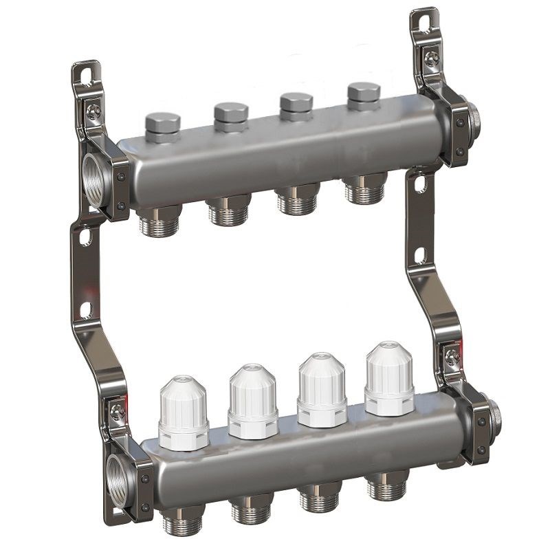 Коллектор RTP 1 х3/4 , 4вых., c вентилями, сталь нерж., белый