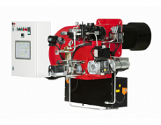 Двухступенчатая комбинированная (газ-мазут) горелка мощностью от 1044 до 2341 кВт.Вариант газовой арматуры, используемый для горелок > 1,2 МВт (включает устройство контроля герметичности и реле максимального давления газа).Оснащена длинной пламенной трубой.Механическое регулирование.В комплекте с газовой арматурой.