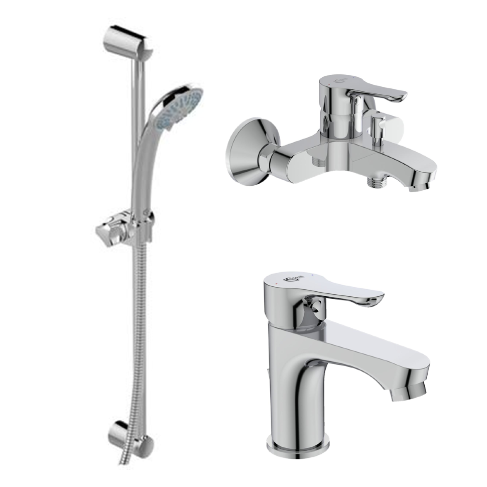 Комплект из смесителей Ideal Standard Set ALPHA (BC486AA д/раковины + BC654AA д/ванны + B1489AA душ.гарнитур), BD004AA