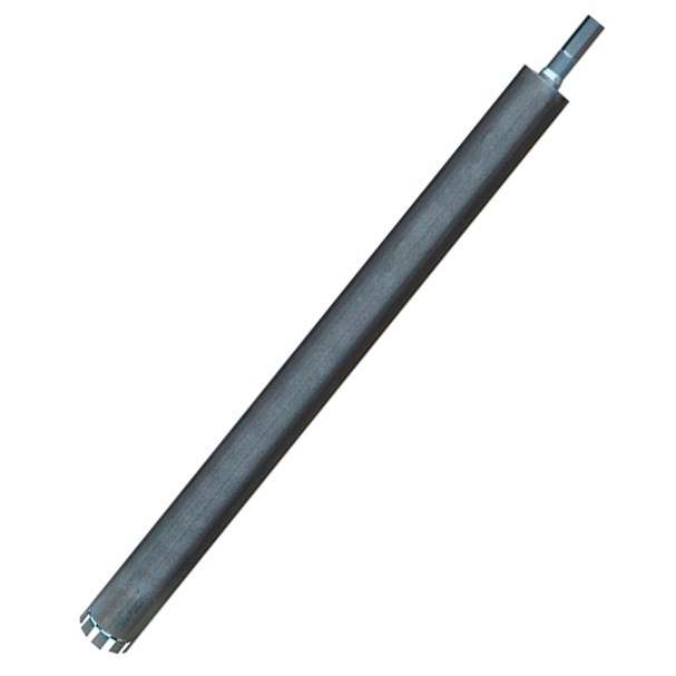 Алмазная коронка для резки бетона, железобетона, кирпича. Сегменты приварены к корпусу при помощи серебряной пайки и подлежат восстановлению. В процессе сверления основная нагрузка приходится на кромку, поэтому корпус не подвергается перегреву. Для вымывания шлама и охлаждения рекомендуется подача воды в место реза.