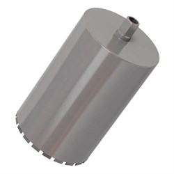 Данная коронка предназначена для алмазного бурения отверстий диаметром 300 мм. Она используется с применением жидкости и предусматривает лазерную наварку сегментов (этот фактор повышает ресурс). Сами сегменты мягкие, поэтому коронка работает с высокой скоростью. Длина составляет 450 мм (стандарт).Специальный сегмент справится даже с высокоармированным железобетоном. Алмазные коронки по бетону G-серии рекомендуются для использования на бурильных установках мощностью 1,5-2,4 кВт.