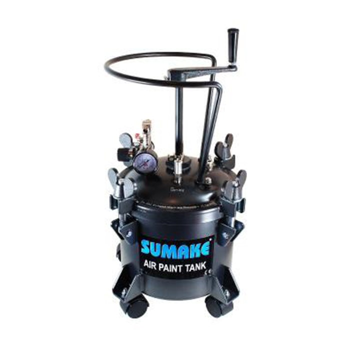 Красконагнетательный бак Sumake AT-10М применяется для высокоэффективных окрасочных работ обрабатываемой детали. Максимальный диаметр штуцера - 3/8 дюйма. Модель укомплектована устройством для механического перемешивания лакокрасочных материалов. Емкость имеет объем 10 л. Оснащена специальным регулятором и манометром, что позволяет производить точную настройку давления. Внутренние стенки резервуара произведены из прочного стального нержавеющего материала. Конструкция обладает простотой использования.