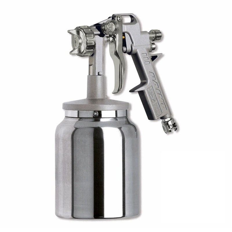 Нижний бачок имеет объем 1 литр и позволяет работать долгое время без дозаправки. Включение краскораспылителя в работу производится нажатием на курок. При этом стержень открывает воздушный клапан, и воздух по каналам корпуса поступает в головку.