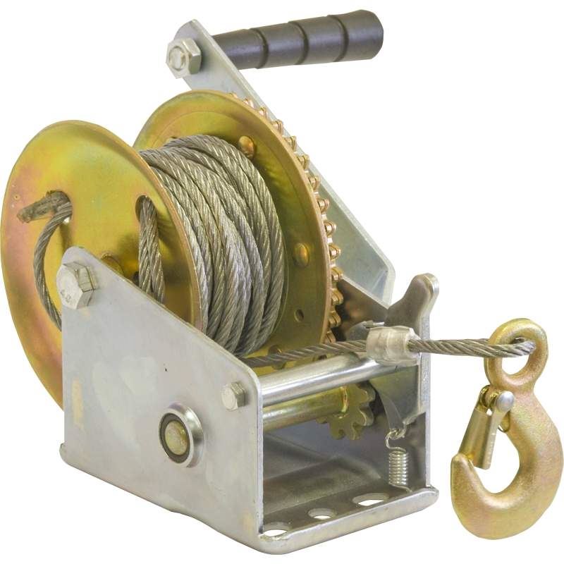 Предназначенная для горизонтального перемещения грузов, ручная лебедка ЛБ-540 способна работать с максимальным весом до 540 кг, при использовании сложного блока. Есть возможность задавать один из трех режимов: перемещение закрепленной нагрузки, сматывание или наматывание, постепенное освобождение катушки с весом (для плавного движения). Вес конструкции 3,2 кг, диаметр используемого троса 4,8 мм. В модели предусмотрен предохранительный тормоз, крюки стальные, кованные, оснащены карабинами для защиты от соскальзывания.