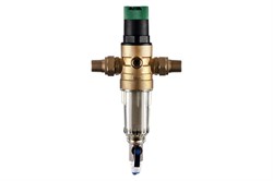 Магистральный фильтр Гейзер-Бастион 7508155233 оснащен регулятором давления, который обеспечивает необходимые показания в диапазоне от 2 до 6 атм. Фильтр производится в комбинированном корпусе из пластика и латуни. В нижней части конструкции предусмотрено отверстие для слива воды и отфильтрованных загрязнений.