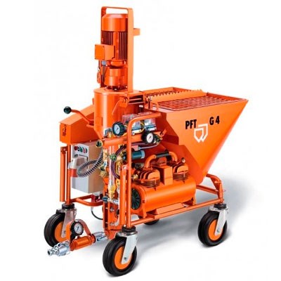 Эта модель штукатурной машины предназначена для проведения работ с различными строительными смесями. Она может применяться не только для подачи, но и для приготовления самых различных смесей (смесей для теплоизоляции, известково-цементных, гипсовых и других). Может осуществлять работу с наливными полами и кладочными смесями. Машина может быть наполнена смесью как вручную, так и с помощью пневматического устройства. Конструкция машины состоит из модулей, которые легко транспортируются. Машина безопасна в работе, надежна и имеет долгий срок эксплуатации. Стоит отметить, что данная модель проста в очистке. Имеет небольшую высоту загрузки.