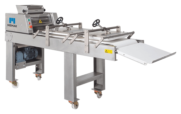 Тестозакаточная машина MemakLMM 200предназначена для формирования тестовых заготовок в цилиндрическуюформу заданной длины и диаметра при помощи закаточных плитна предприятиях общественного питания и торговли. Модель оснащена прессовальной плитой,2цилиндрами, поддоном для сбора теста, емкостью для мучной посыпкии колесами, облегчающими передвижение. Изделие выполнено из нержавеющей стали.