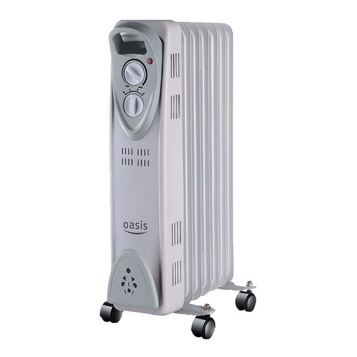 Масляные радиаторы Oasis, входящие в серию US просты и удобны в работе, удачно скомпонованы и решают задачу временного обогрева помещения. Прочный металлический корпус сочетается с привлекательным внешним видом и окрашен в серый цвет. Возможность регулирования мощности на трех уровнях. Работа прибора блокируется при перегреве и предохраняет его от получения ущерба. Перемещение на колесиках для лучшего обогрева.
