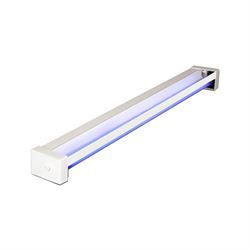 Настенно-потолочный облучатель ОБНП 1х30-01 F-лампа (с защитным экраном) выполнен в длинном корпусе, что соответствует лампе большой длины. Облучатель прост, надежен и эффективен для создания обеззараживающего действия в помещении. В данной единице оборудования установлена только одна лампа, что следует учитывать при обработке помещения.