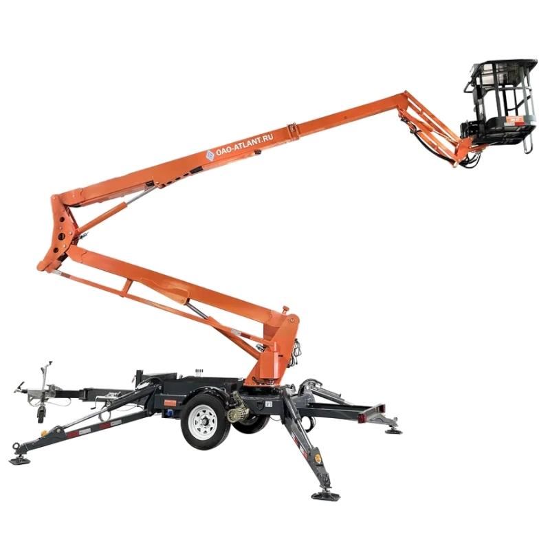 Коленчатый подъёмник АТЛАНТ (высота подъёма до 12 м) поставляются с любым типом привода на выбор покупателя. Двигатель может быть дизельным, аккумуляторным или бензиновым (возможны различные комбинации, например, АКБ и бензин). Оснащается тягово-прицепным устройством, может быть закреплен к автомобилю или погрузчику, внутри помещения возможна ручная буксировка. Платформа ограждается по всему периметру для безопасности оператора, гидравлический цилиндр обеспечивает сохранение горизонтального положения при движении.