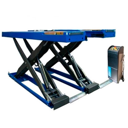 Подъемник этой модели – это ножничное оборудование электрогидравлического типа, грузоподъемность которого составляет 4,5 тонн. Комплектация приспособления дает возможность устанавливать агрегат в заглубленной вариации. А вот для напольной установки понадобятся трапы, которые нужно докупить дополнительно. Приспособление оснащено клапаном перегрузки. Есть также клапан, который блокирует опускание при снижении давления. Контроль над опусканием проходит в автоматическом режиме. Есть ручной спуск при отключении электрики. Корпус подъемника имеет порошковую окраску.