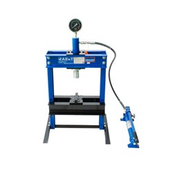 Гидравлический пресс T61210 с усилием 10 тонн станет отличным решением при производстве ремонтных работ в области автосервиса. Модель оснащена ручным приводом и имеет манометр (позволяет контролировать нагрузку). Ход штока цилиндра составляет 135 мм. Цилиндр может смещаться вдоль рамы на 14 см. Конструкция изготовлена из высококачественного метала, надежна и долговечна, благодаря чему получила популярность среди российских специалистов. Вес устройства составляет 47,5/51 кг. Конструкция устанавливается на стол. удобна и проста в эксплуатации.