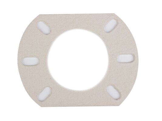 Прокладка фланца O90 мм, арт: 65321089, купить которую можно здесь, используется при установке жаровой трубы. Этот безасбестовый прокладочный материал не агрессивен для окружающей среды, не вызывает коррозию металла. Обеспечивает герметичное соединение на длительное время. На прокладке выполнены продолговатые отверстия для болтов диаметром 11 мм. Толщина – 4 мм. Диаметр жаровой трубы – 90 мм.